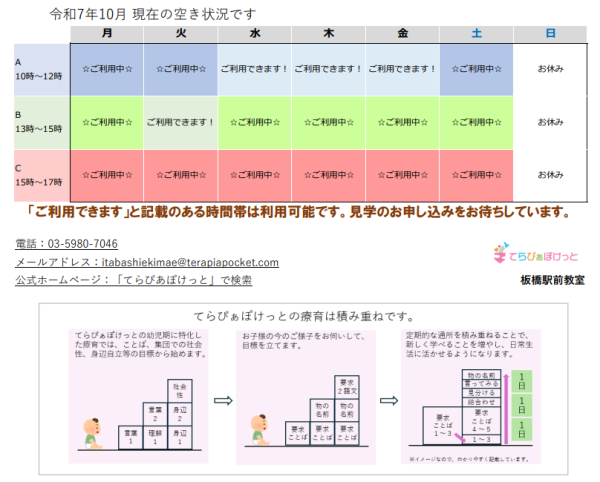 令和7年10月 空き枠のお知らせ