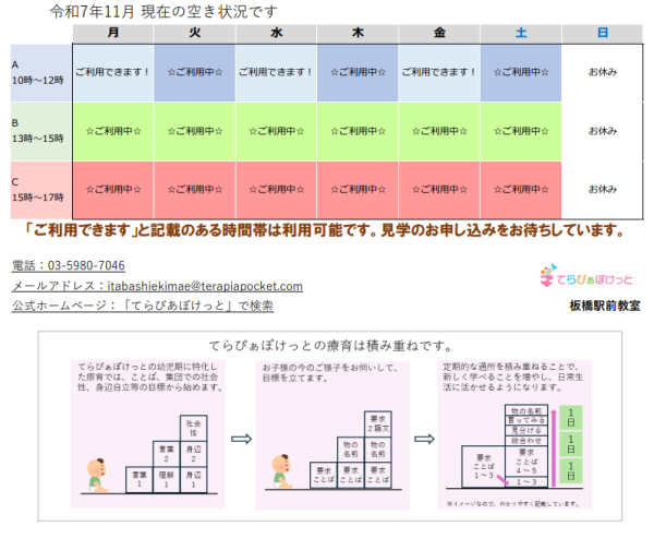 🍁**令和7年11月 空き枠のお知らせ(板橋駅前教室)**🍁
